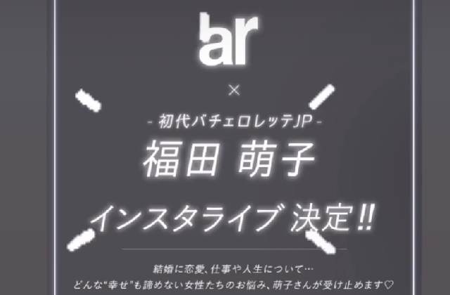 ar公式Instagram(@ar_magazine)で定期的に実施しているインスタライブが好調です!10/28(水)に福田萌子さんを招いた配信した「【初代バチェロレッテJPの福田萌子さん】が読者のみなさんから募集した質問にお答えします#x1f339;」では、...