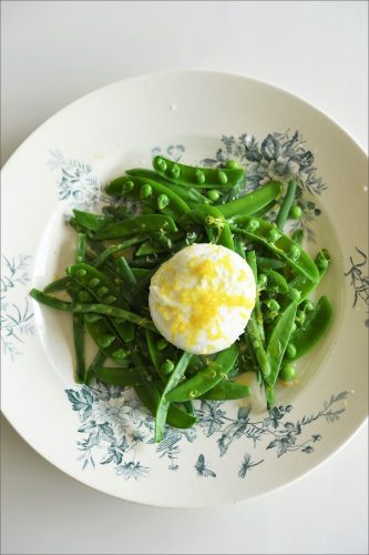 菜の花の蒸し寿司・モッツァレラと新豆のレモンサラダ・グリーンピースのスクランブルエッグ