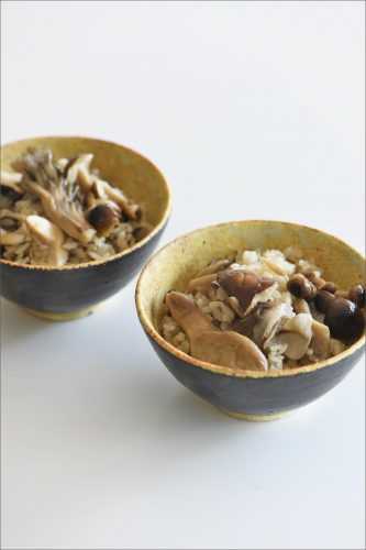 キノコごはん・カブとホタテの塩蒸し・さつま芋とエリンギのかき揚げ