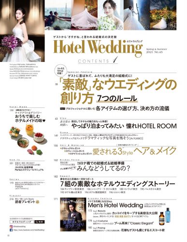 「憧れHOTEL ROOM」特集では、2泊3日滞在型ウエディングや、エグゼクティブラウンジの贅沢ステイの魅力を大調査。自宅で楽しめるホテルメイドのテイクアウト&デリバリー美食もご紹介します!